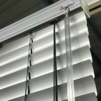 Za pomocą poprowadzonej po bokach żaluzji stalowej linki powleczonej sylikonem i przymocowanej specjalnymi uchwytami do listwy przyszybowej, zabezpieczamy żaluzję podczas uchylania okna.
